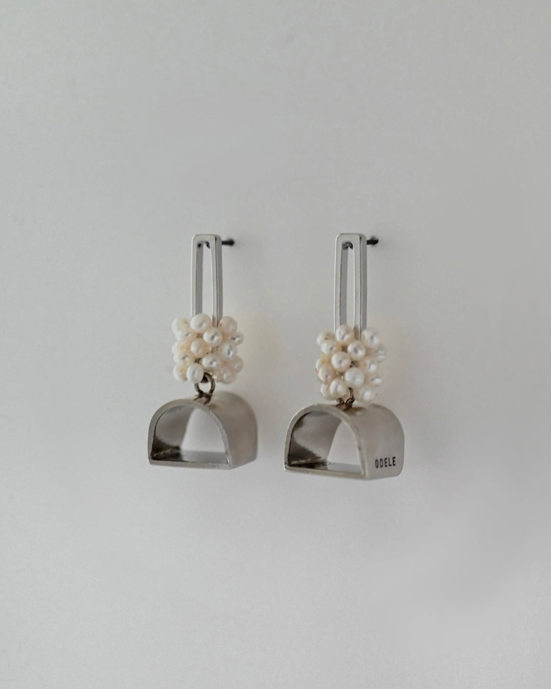 小粒パールの可愛らしさも加わって、幾何学だけどどこか温かい雰囲気に仕上がりました。