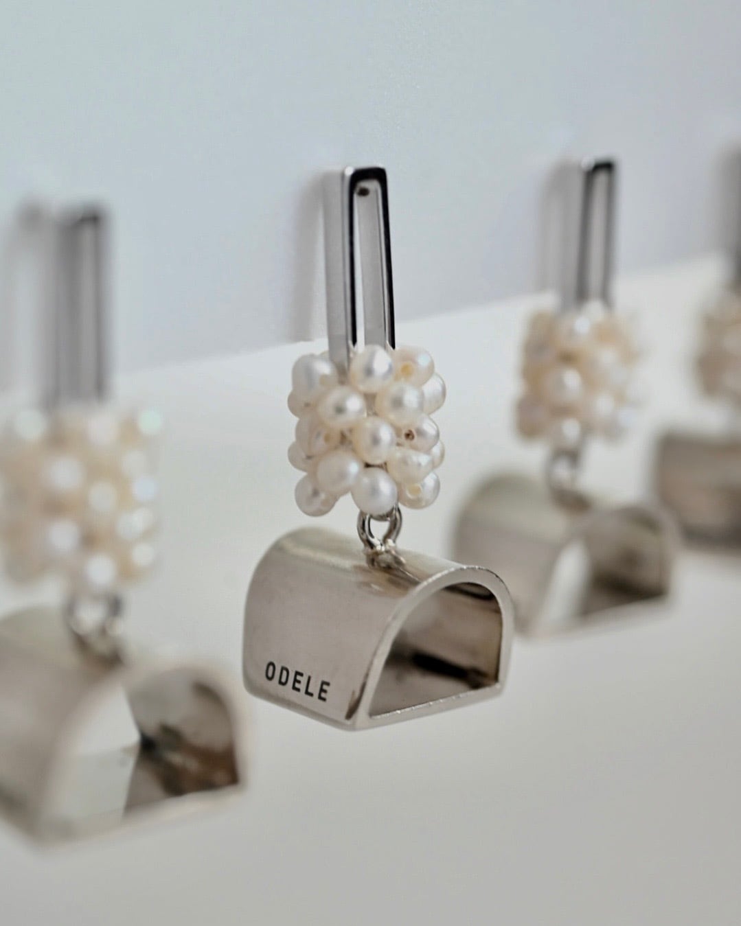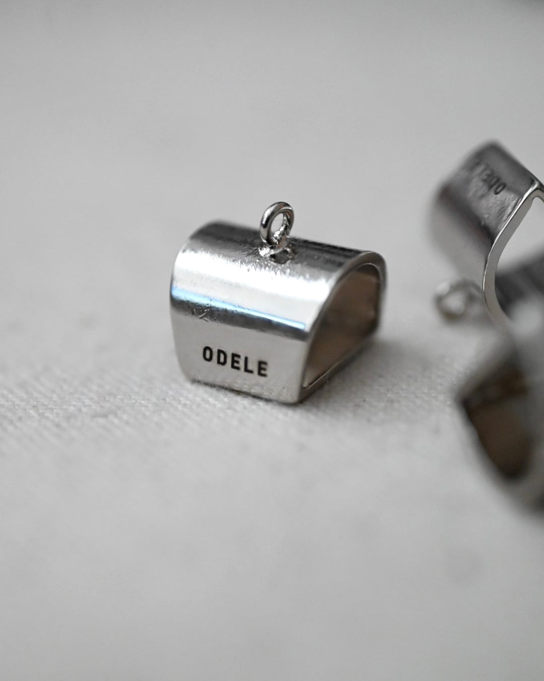 ボタンの形はそのままに、ODELEの刻印を施し、先端に吊るしています。
