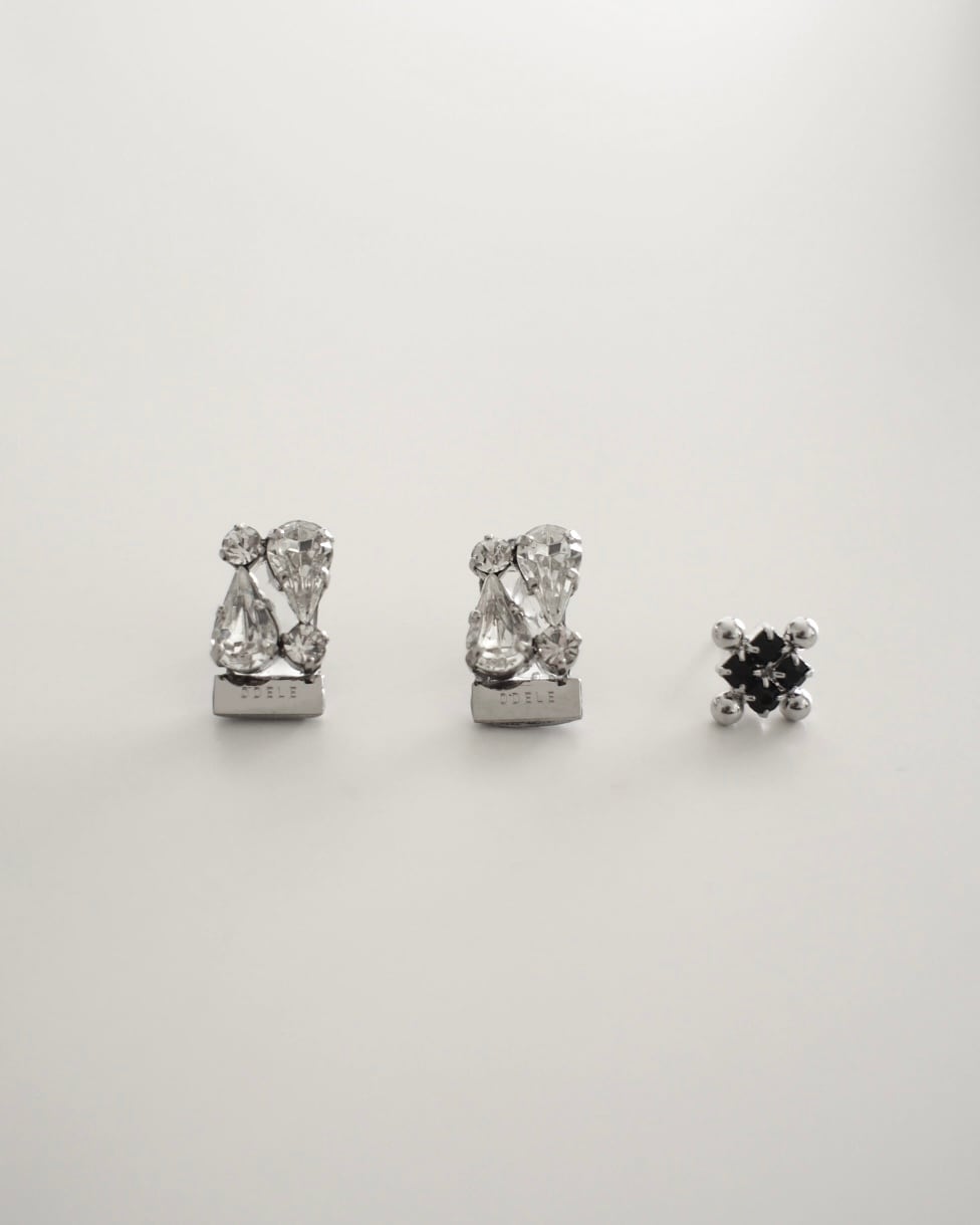 「i!」のモチーフをそのまま活かしたポイントピアスに、今回はもう一粒を加えた3点SETをご用意しました。