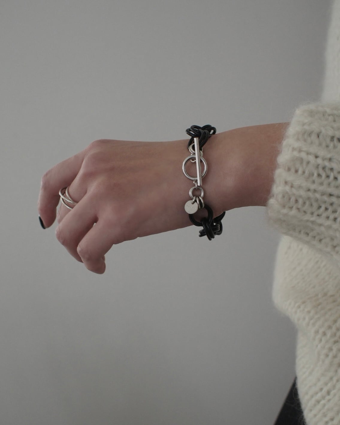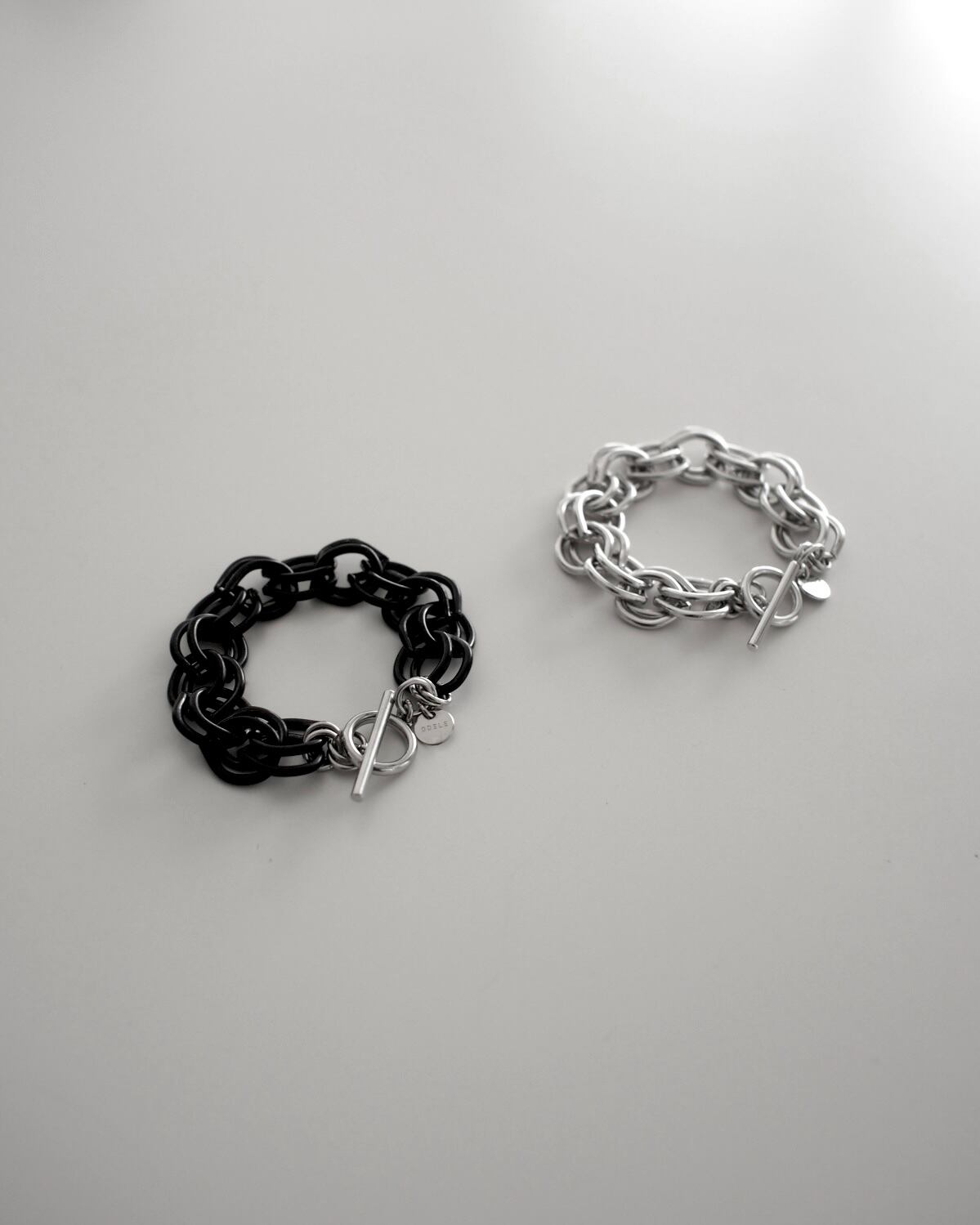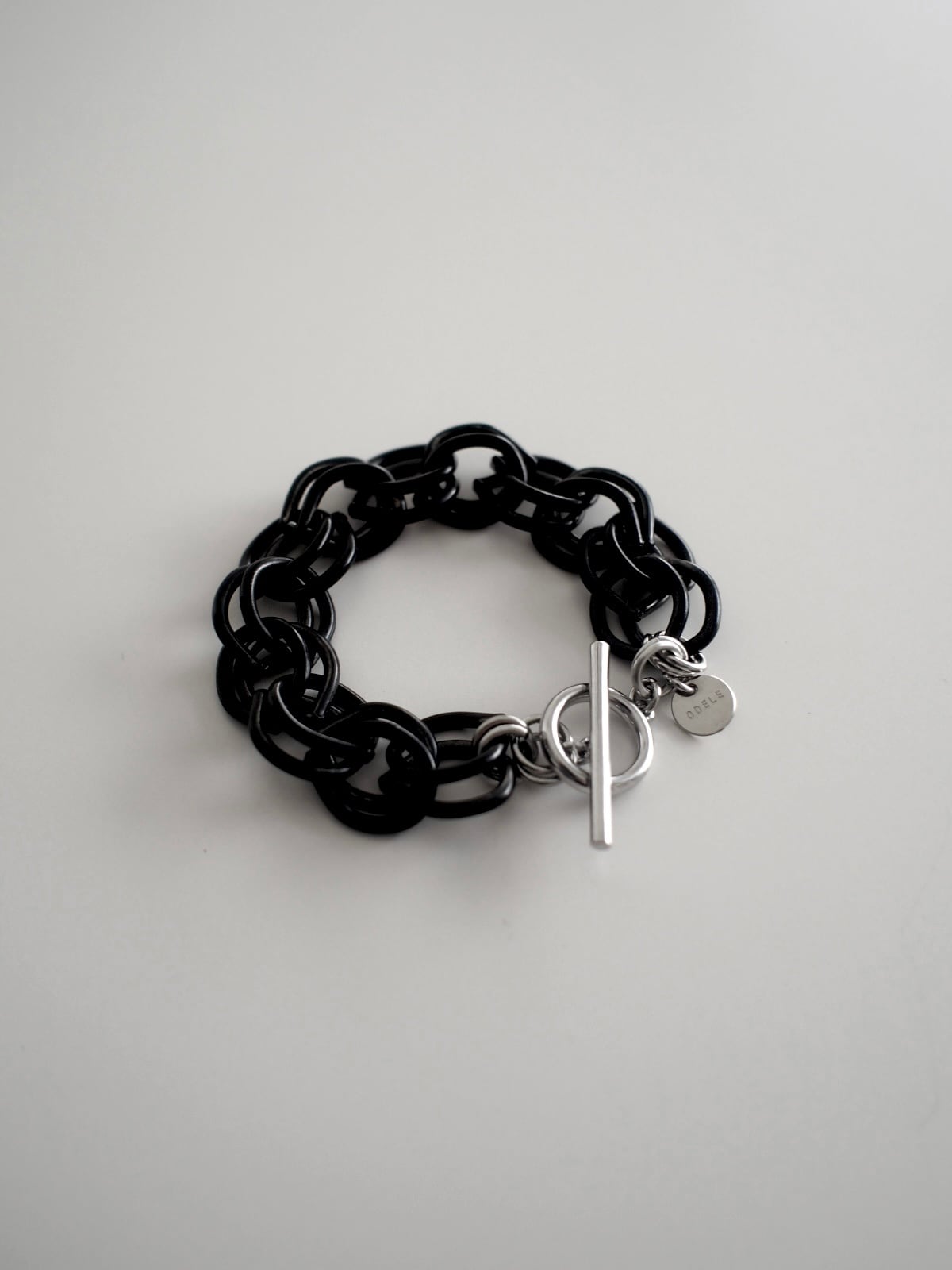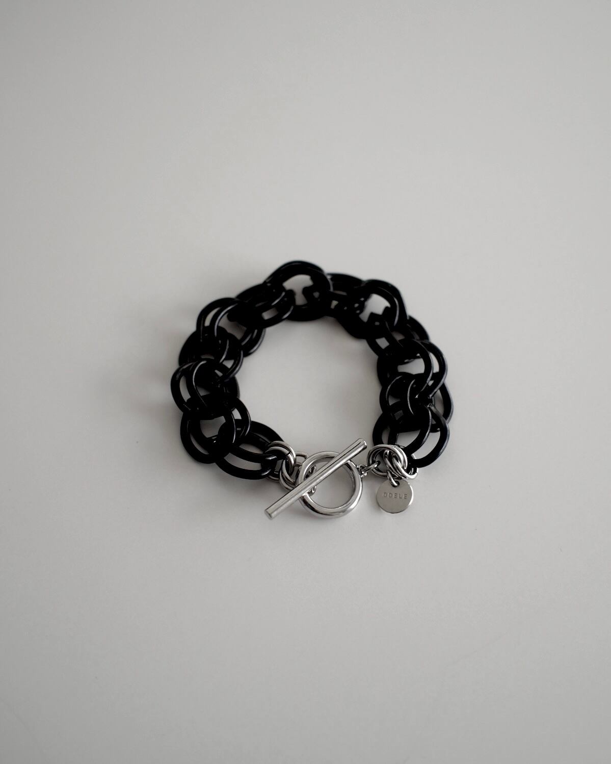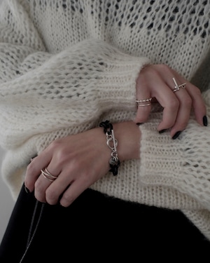 こちらのチェーンは、よく見ると一つひとつがただのフープではなく、先の尖ったリーフのような一癖あるデザイン。