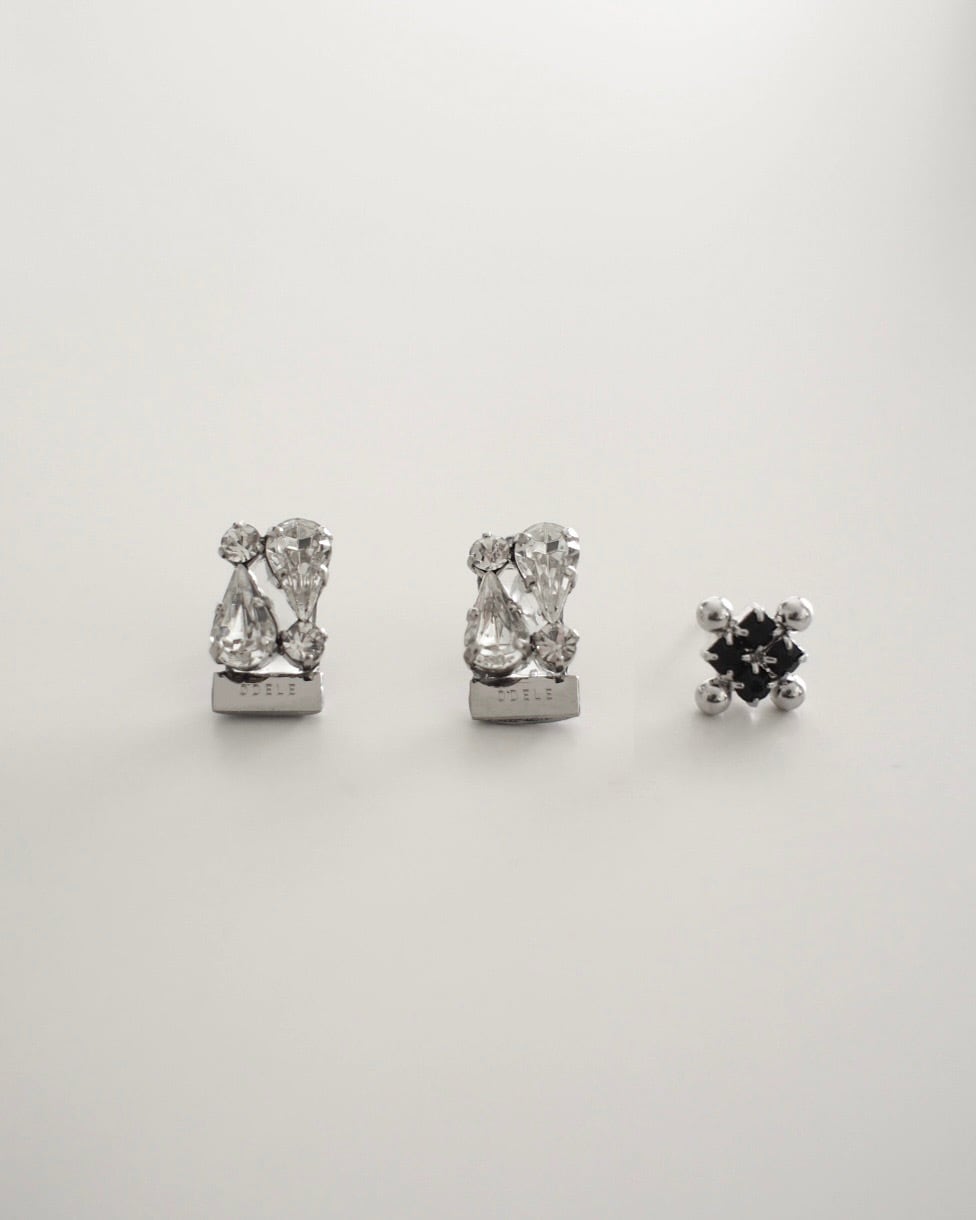 「i!」のモチーフをそのまま活かしたポイントピアスに、今回はもう一粒を加えた3点SETをご用意しました。