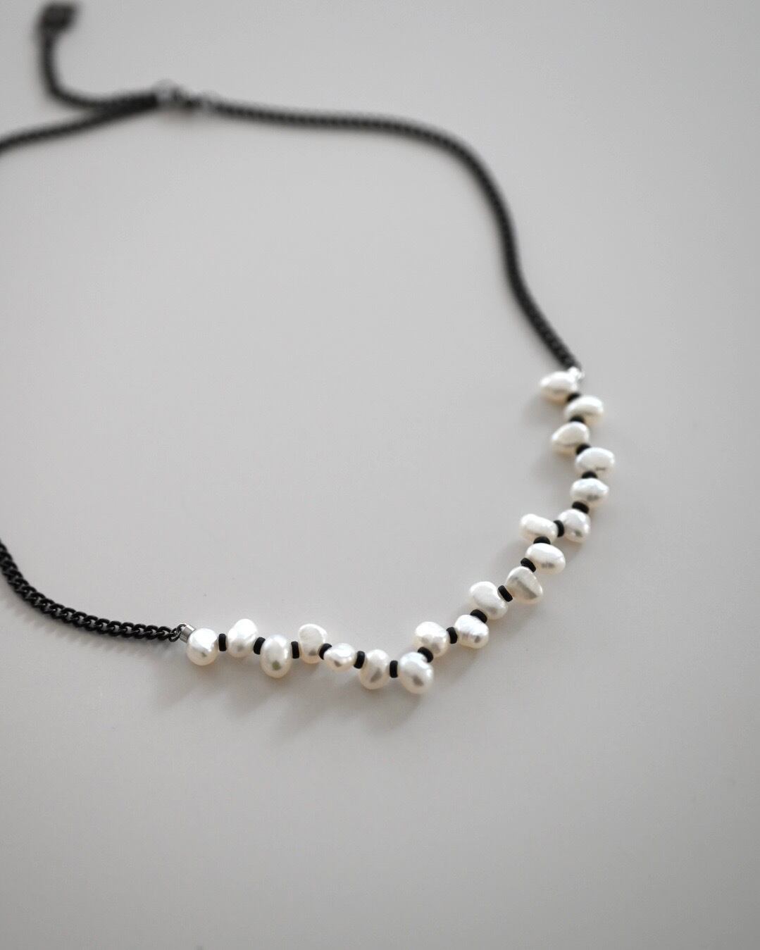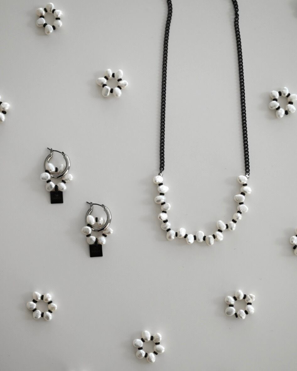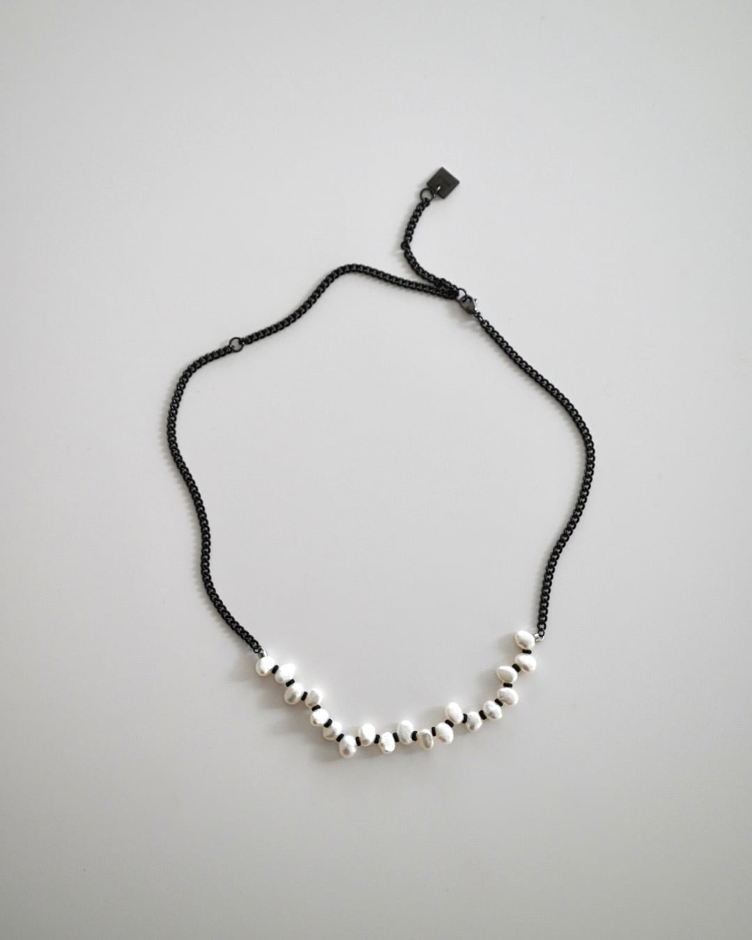 あえて中心をずらして開けられたパールの穴を活かすことで、ランダムなリズムを作り出しています。