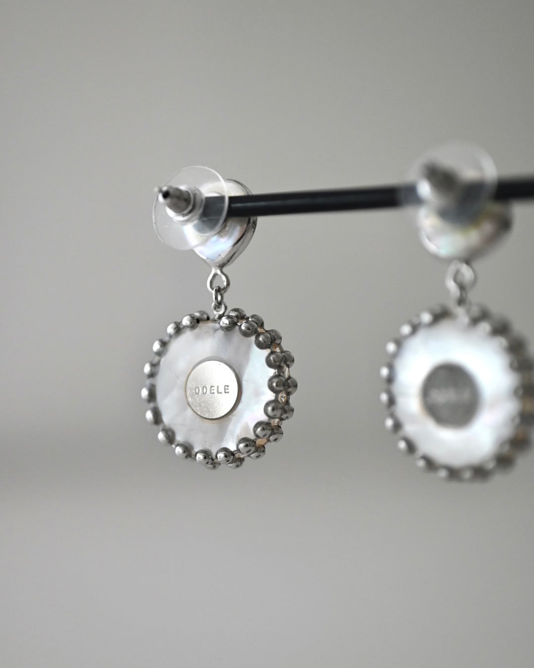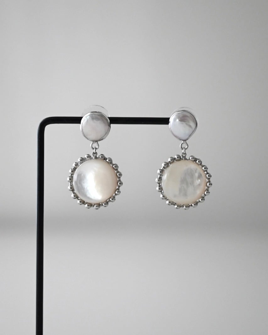 とても美しい白蝶貝のシンプルなヴィンテージボタンを使用したピアス。