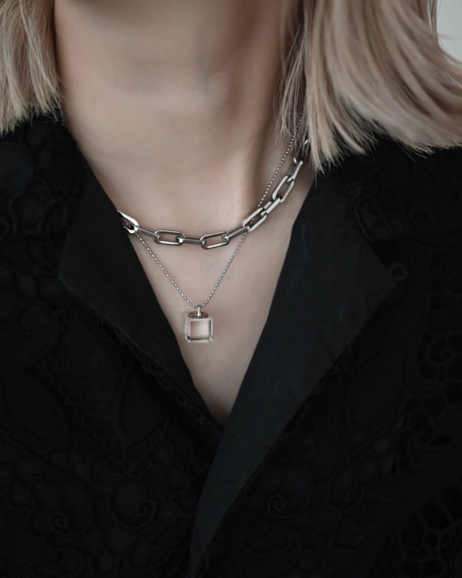 ボックスデザインのチェーンにODELEチャームをワンポイントプラス。